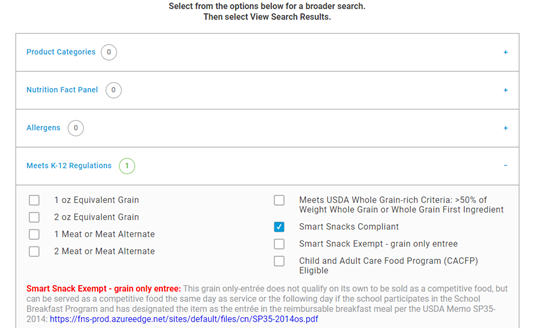 You can also request a list of all CACFP or Smart Snack products and download them on the Product Nutrition Finder: https://www.generalmillsfoodservice.com/resources/product-nutrition-finder