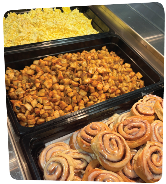 April has embraced a return to more traditional meal lines but with a modern twist. Students are welcomed and served their hot meals with a smile. Then they pick and choose meal components among many different service lines to customize their meals. This flexibility respects student preferences while maintaining nutritional standards.