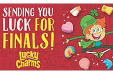Especially the colorful, delicious taste of childhood favorite, Lucky CharmsĀ®. So send them the luck of the leprechaun during finals week with ideas from our event guide and magically delicious recipe inspiration. Download the various tools below to add some fun to your operation.